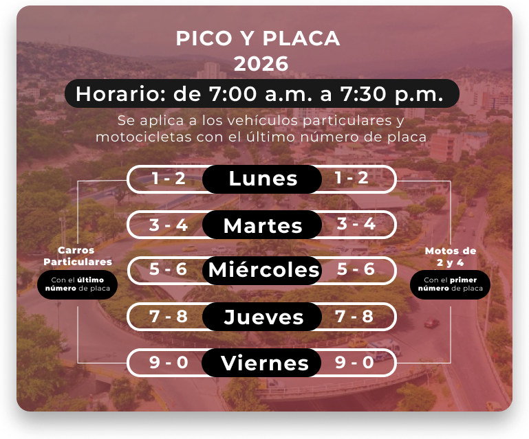 En Cucuta, el pico y placa se aplica de lunes a viernes, con horarios específicos según la matrícula de la placa.